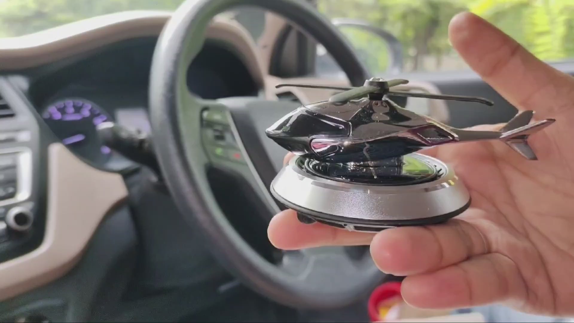 Enjoy a fresh, stylish drive with this solar car air freshener featuring a rotating helicopter design. Powered by sunlight, it delivers long-lasting fragrance without batteries, charging, or chemicals—perfect for daily use in UAE conditions.